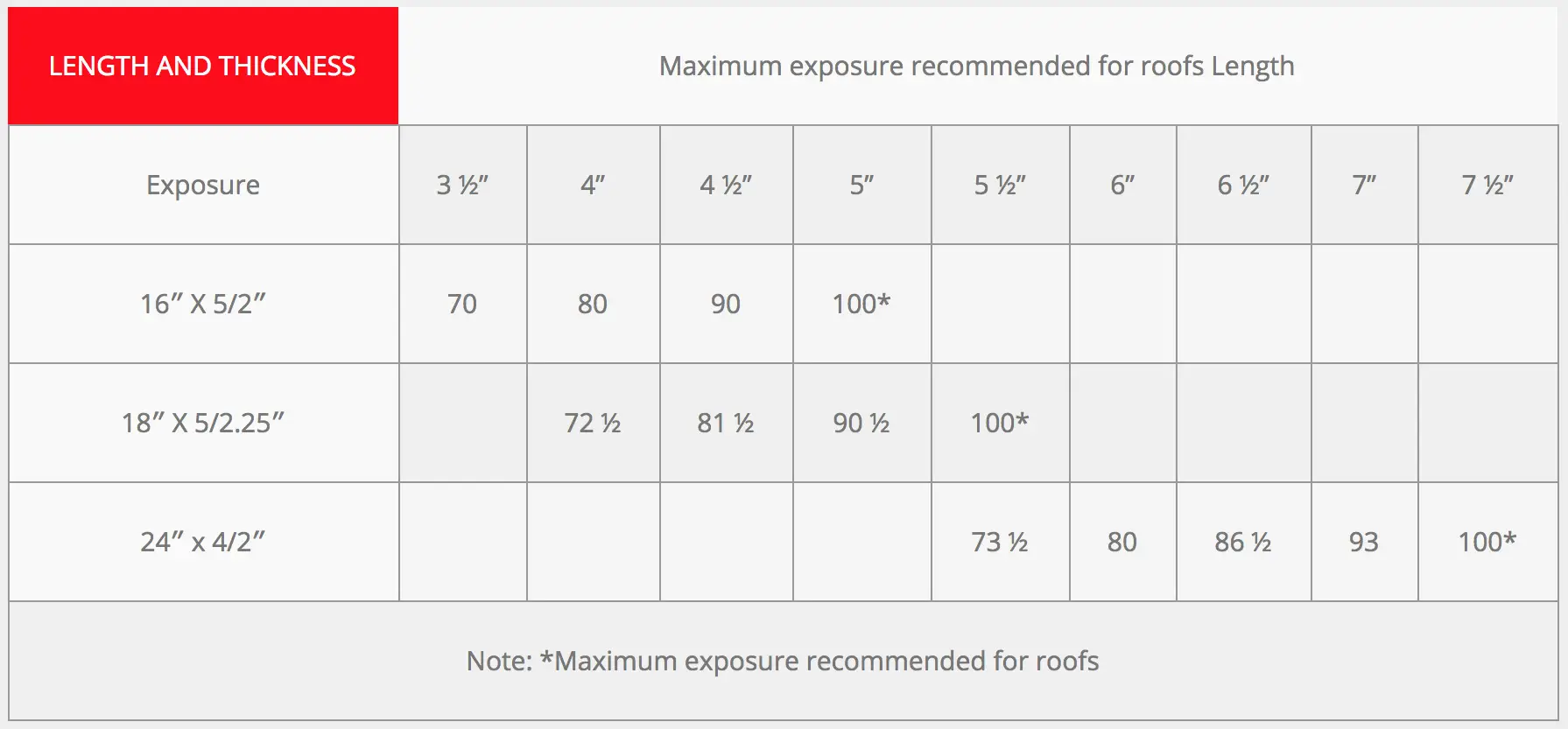 - All coverage based on an average½” spacing between shakes.